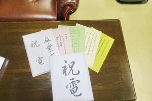卒業式が近づくにつれて、祝電も届き始まっています。