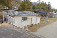 体育倉庫の屋根にも雪が・・・。