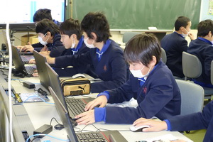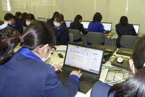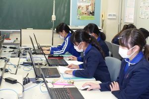 6年生は、理科や総合の学習のまとめとして、環境について調べたことをプレゼンテーションソフトを使って発表できるよう準備をしています。