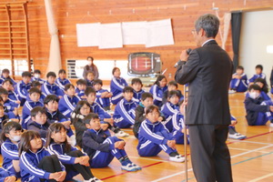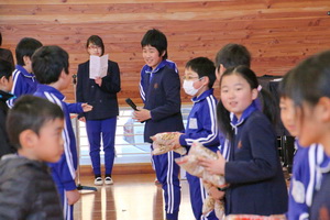 2校時に集会委員会が企画しての豆まき集会が行われました。
