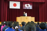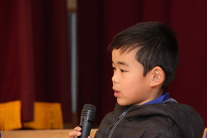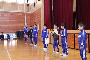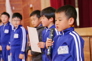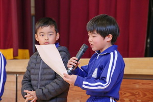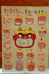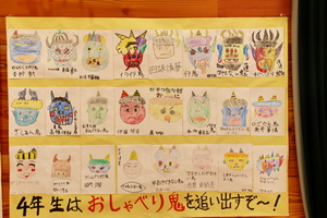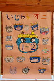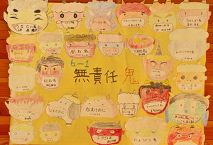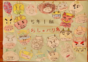 校長先生の節分についてのお話の後、それぞれの学年・学級代表から退治したい鬼の発表を行いました。