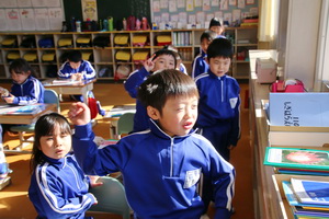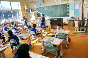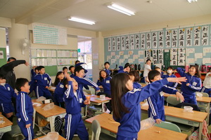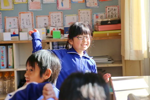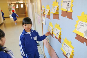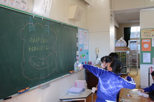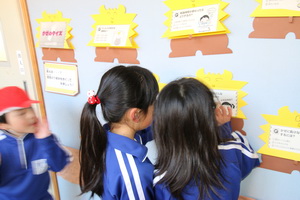 1校時に1年生の教室の前通ると1組は国語で早口言葉を繰り返して言うことの発表をを楽しそうにしていました。