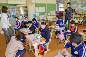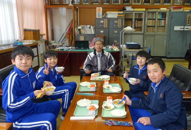 毎日、給食前になると配膳室の方から元気な声で「いただきまーす!!」とか「おねがいしまーす!」というのが職員室まで聞こえてきます。
