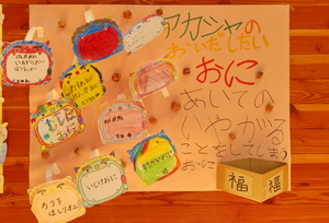 最後に教室でまく豆が渡されそれぞれのクラスにもどり、豆をまいたりおいしく食べたりしました。