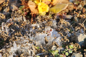 花壇に目を向けると霜と霜柱が・・・!!