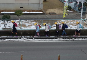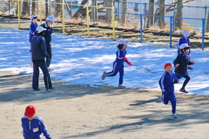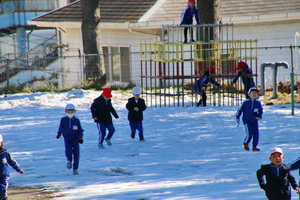 休み時間になると、保健室の前にある健康に関するクイズをしたり、先週末に降った雪の上で遊んだりする姿が見られました。