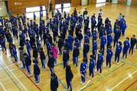 今日の大休憩に体育館で、鼓笛の合同練習が行われました。
