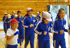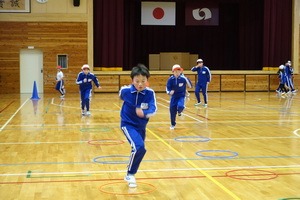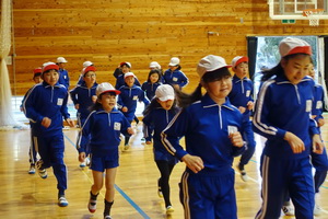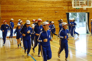 学年ごとに練習しながら、途中に1分間の計測タイムを2回いれて、自分たちの記録の更新を目指していくものです。