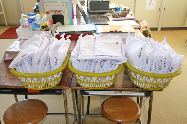 今回は、だいぶ傷んで古くなっていた児童用の給食エプロンを新調しました。