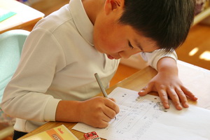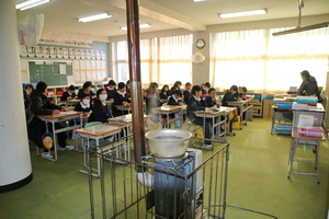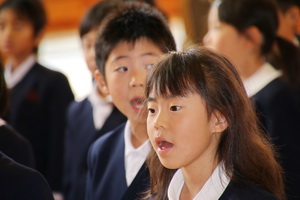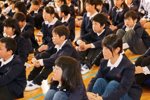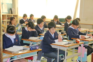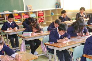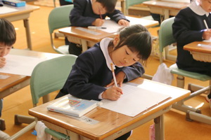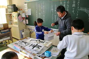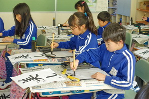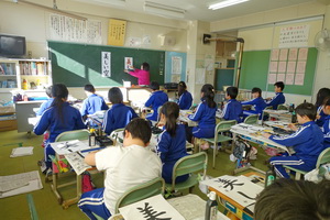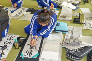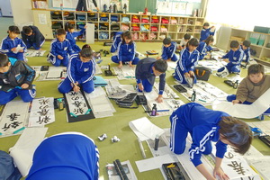 昔から宮中の仕事始めや習い事はじめに由来するともいわれている書き初め会が、各学年ごとに行われています。