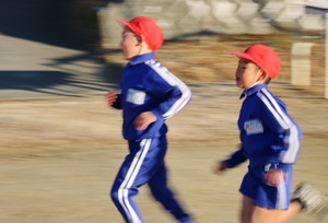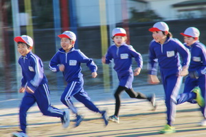 吐く息も白くなる中、子どもたちは元気に校庭を走っていました。早くも休みモードから、通常の学校生活モードにすっかり戻ったようです。