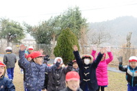 1年生はそれを見て大興奮!今月の歌は、「ゆきやこんこん、あられやこんこん」の「雪」ですが、その歌詞に出てくる「犬はよろこびにわかけまわる」のようにみんなで外に出て初雪の感触を楽しんでいました。