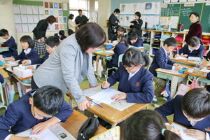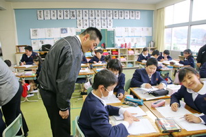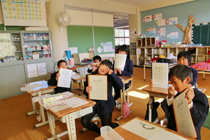 この後、今日は学活と授業があったのでそれぞれ学級に戻り宿題を出したり、3学期や今年の目当てを書いたりする活動をしました。