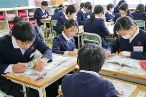 小中連携の一環として行われたこの会は、はじめに5・6年生の授業参観から始まりました。