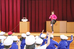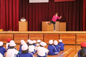 今日は、1年生・2年生がいっしょに、リズム教室に参加しました。