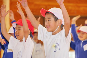 子どもたちは、「おどるポンポコリン」のリズムにのって楽しそうに体を動かしていました。