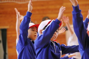 最近では、5年生が始めた体力作りに4年生や6年生も積極的に参加しています。