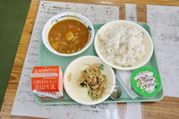 今日はクリスマス前ということもあってみんな大好きなカレー。しかもチキン入り。あとカップケーキ風ゼリー???でした。