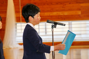 校長先生のお話の後、2年生・4年生・6年生の代表児童が2学期の反省や冬休みの抱負の発表を行いました。