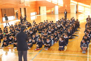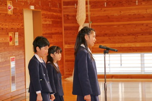1年生・3年生・5年生の代表児童が冬休みの反省と3学期の抱負を発表しました。
