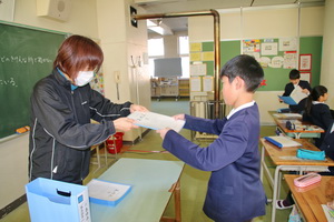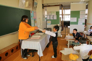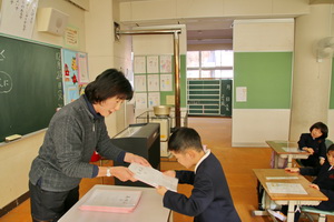 大掃除が終わるといよいよ今日のメインイベント。通知票渡しです。