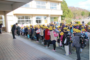 暖かかった冬休みにくらべ少し肌寒さを感じた今朝でしたが、子どもたちは元気に登校しました。今朝は、学期はじめでしたので、PTA会長さんをはじめ常磐地区の青少年健全育成協議会の方々も立哨に加わり子どもたちに声をかけてくださいました。