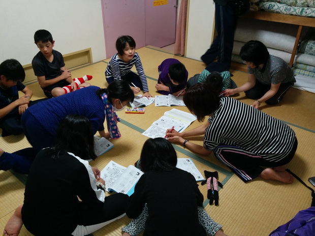 二日目が始まりました。朝の集いです。昨夜はみんなぐっすり眠り、体調万全です。