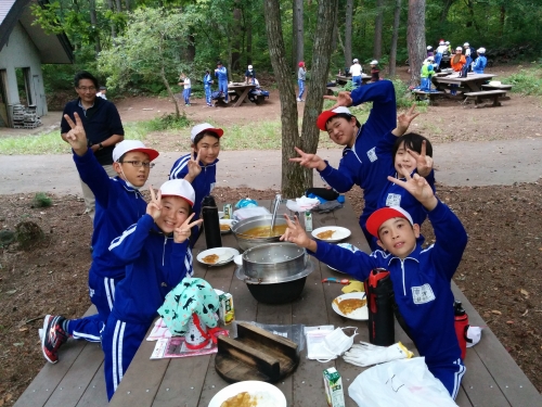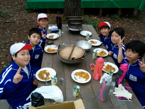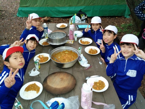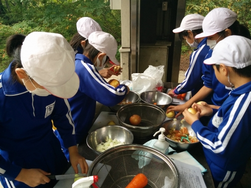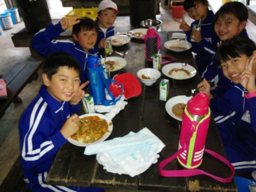 班ごとにカレーライスを作りました。役割ごとにてきぱきと料理をしました。御飯の焚き加減もちょうどよく、おかわりを何回もして全部たいらげました。後片付けもきちんとできました。