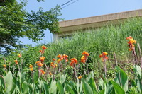そんな中、学校へ車で上る坂道の所にグラジオラス(?)の花が、群れをなすように咲いています。