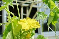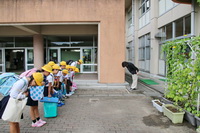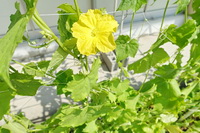学校の職員室前では、4年生が育てているヘチマの花も咲き始めました。