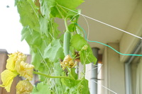 4年生のヘチマは、ぐんぐん育ち、もう2階の音楽室までのびています。ヘチマの赤ちゃんも見え始めています。