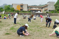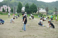日差しは、それほど強くはありませんでしたが、湿度も高く蒸し暑い中、たくさんの保護者のみなさんの作業で校庭はみるみるきれいになっていきました。