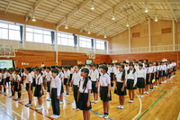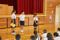 始業式では、校長先生のお話の後、代表児童の「夏休みの思い出と二学期の抱負」の発表がありました。