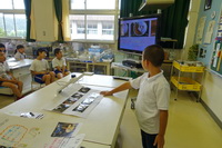 夏休み明けのこの時期に注意しなければならないことなどのお話を、テレビの画面を見ながら子どもたちは真剣に聞いていました。