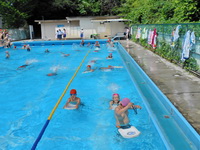黒く日焼けした子どもたちが元気に泳いでいました。暑い日のプールは本当に気持ちよさそうです。