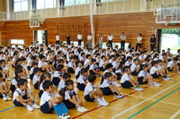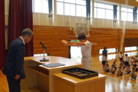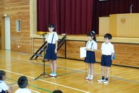 校長先生のお話、5年生・3年生・1年生の代表児童による1学期の反省と夏休みの抱負の発表がありました。