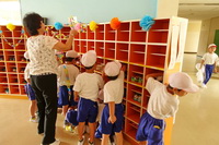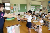 朝の天気は、予想された雨ではなく傘なしで登校できました。いつものように元気にあいさつから始まりました。