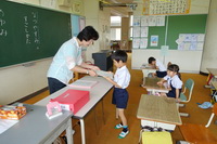 1年生の教室では、魚釣り大会やフルーツバスケットをやっていました。