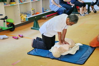 救急救命の講習会では、アナフィラキシー症状をおさえるエピベンの使い方や熱中症の対応の仕方なども学びました。