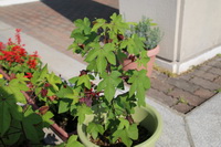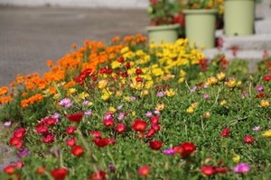 ポーチュラカの花壇も相変わらずにぎやかです。また、もう終わったと思って刈り込んだラベンダーが三度、復活しています。