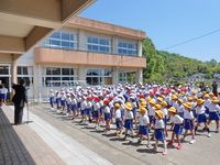 校長先生のお話、週番の先生のお話のあとで、今月の歌「風よふけふけ」をみんなで歌いました。