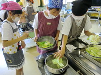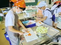 5年生の家庭科で ゆで野菜サラダ作りをしました。