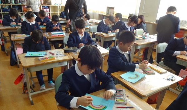 一人一人虹を作ることによって、英語での色の言い方に慣れ親しむことができました。