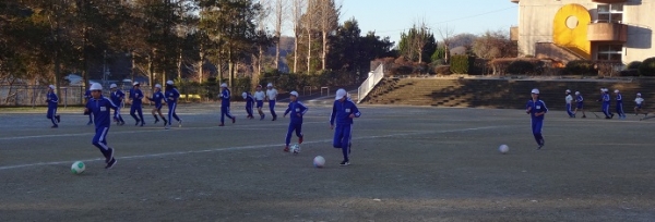校庭を5周したあとはフィールドで基礎トレーニングを行いました。