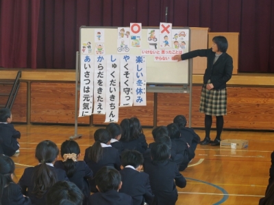 終業式の後,生徒指導担当の先生からのお話がありました。