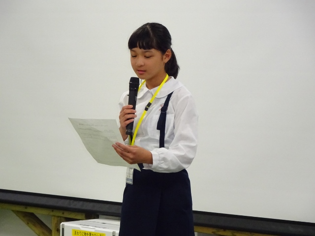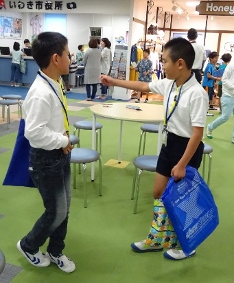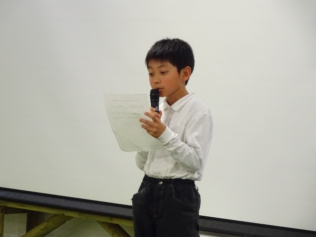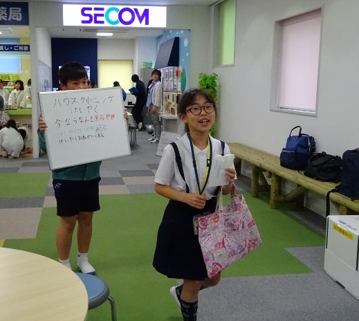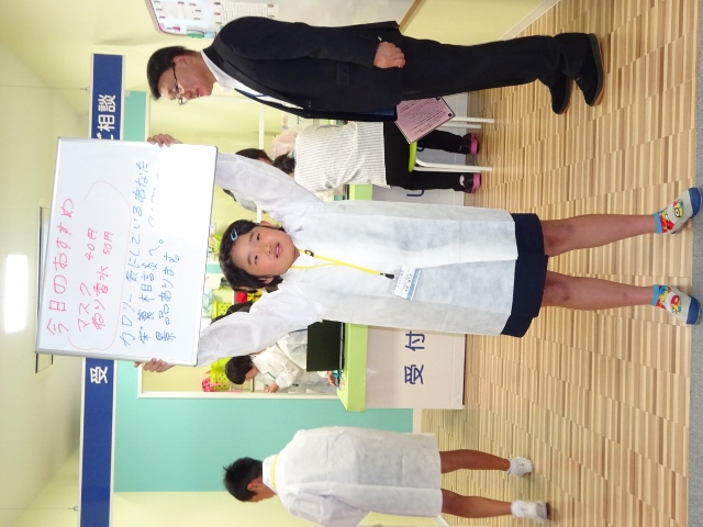 企業の代表をつとめた児童は,最後にみなさんの前で,各企業の