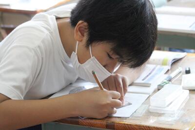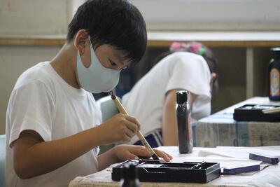 5年生は毛筆に取り組んでいる様子です。