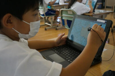 2022年10月4日 08時45分1年生はICT支援員にタブレットの使い方を教わりました。