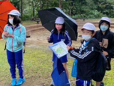 オリエンテーリングも後半に入りました。ゴール付近で休憩&作戦会議中です。