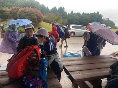 雨で気温も低いので、早めに切り上げました。お昼の時間まで休憩中。